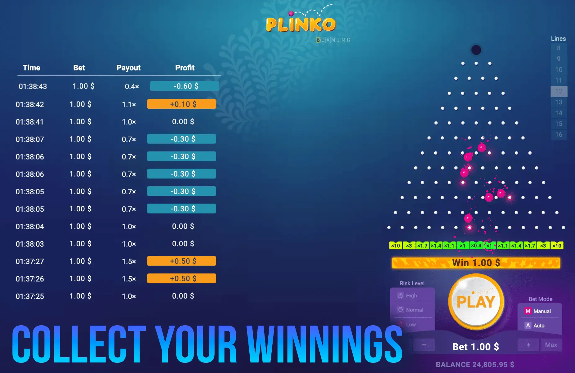 - Win Real USD or Crypto: Unlike free versions, real-money Plinko gives you the chance to win actual payouts right to your account.